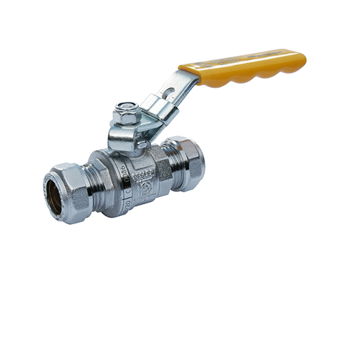 Type: Chromium plated brass full bore ball valve (yellow lever handle). Compression ends to EN 1254/2.CE